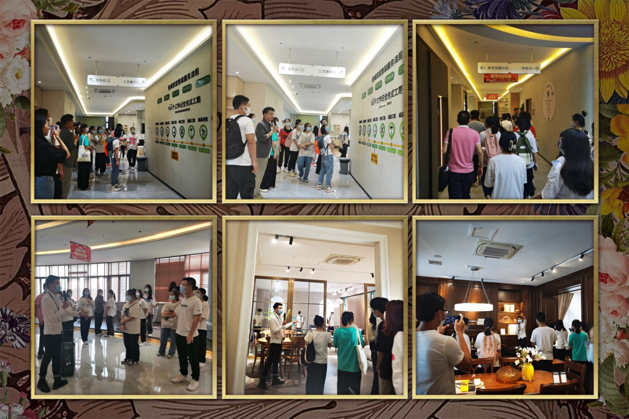 當日下午約14:30,湛江科技學院會計專業(yè)師生一行人乘車抵達我司總部總店一樓展廳,師生們休整片刻后,由我司信威家居營銷中心銷售主管林超凡及設計經理吳汝任帶領師生們參觀了信威家居體驗中心。體驗中心展廳面積達1.5萬平米,包含實木家具館、現代家具館、中式家具館、美式家居館、軟裝館、整裝館、板木高定館、睡眠中心等,是目前湛江地區(qū)最大的現代化家具家居綜合展示體驗中心。經過參觀學習之后,老師和同學們進一步了解到家具家居的生產工藝、材料品質、銷售流程以及設計、定制、裝修、軟裝、一站式服務等內容。